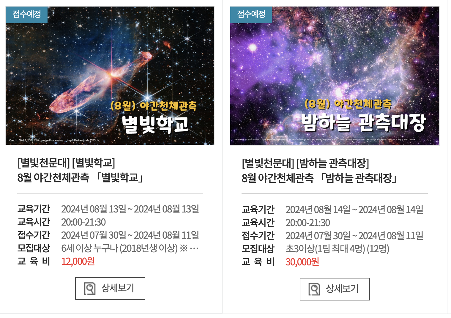 - 기상 악화로 천체 관측이 어려울 경우, 천체 관측 대신 대체 프로그램을 운영합니다.