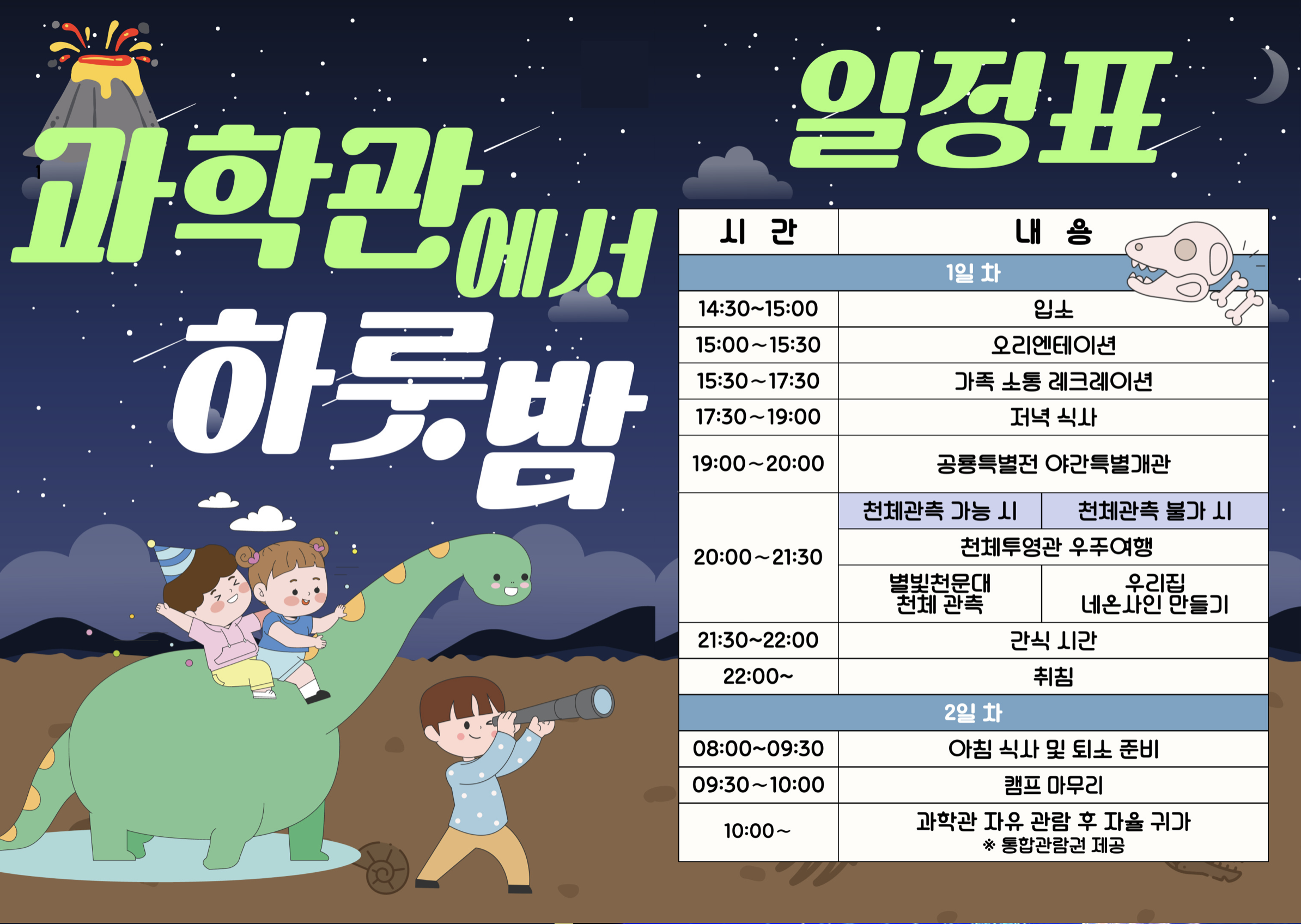 여름방학 특별 가족 캠프 <과학관에서 하룻밤>